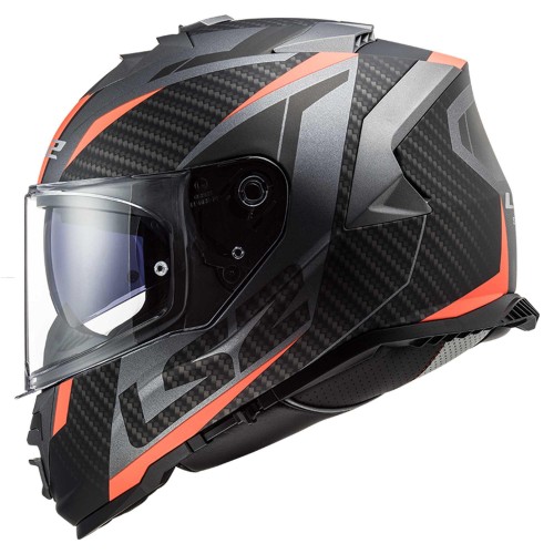 CASCO LS2 INTEGRAL MODELO STORM RACER, COLOR NEGRO NARANJA.