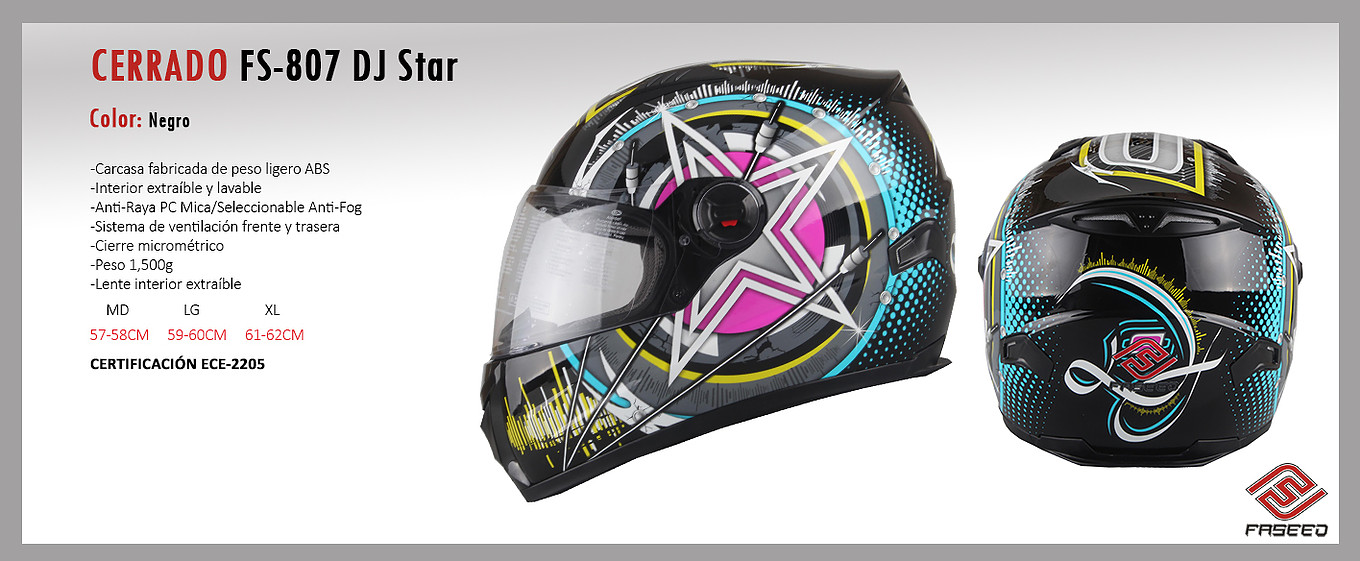CASCO FASEED CERRADO CERTIFICACO ECE 22-05 MODELO: HORNET, DJ STAR, XRT TALLAS: M, L, XL, XXL