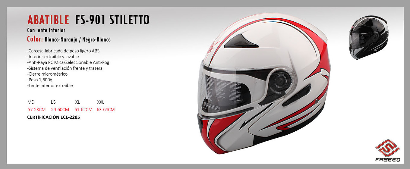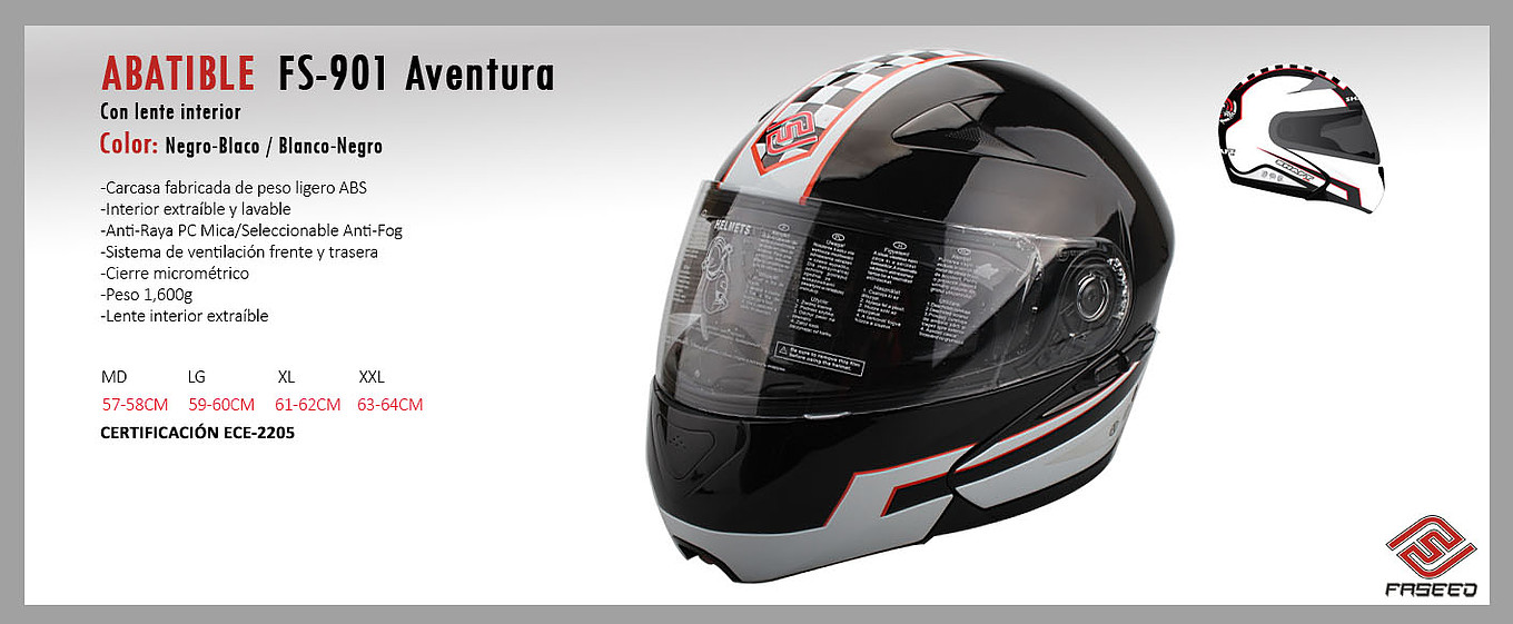 CASCO FASEED FS-901 ABATIBLES con LENTE INTERIOR