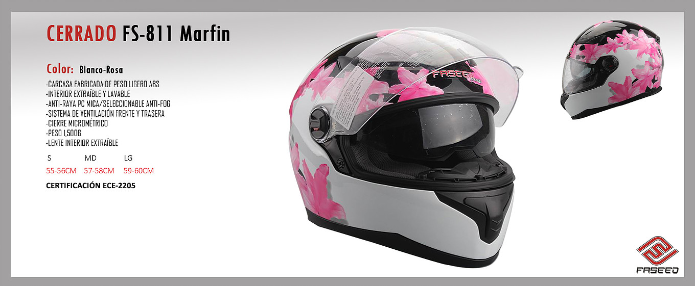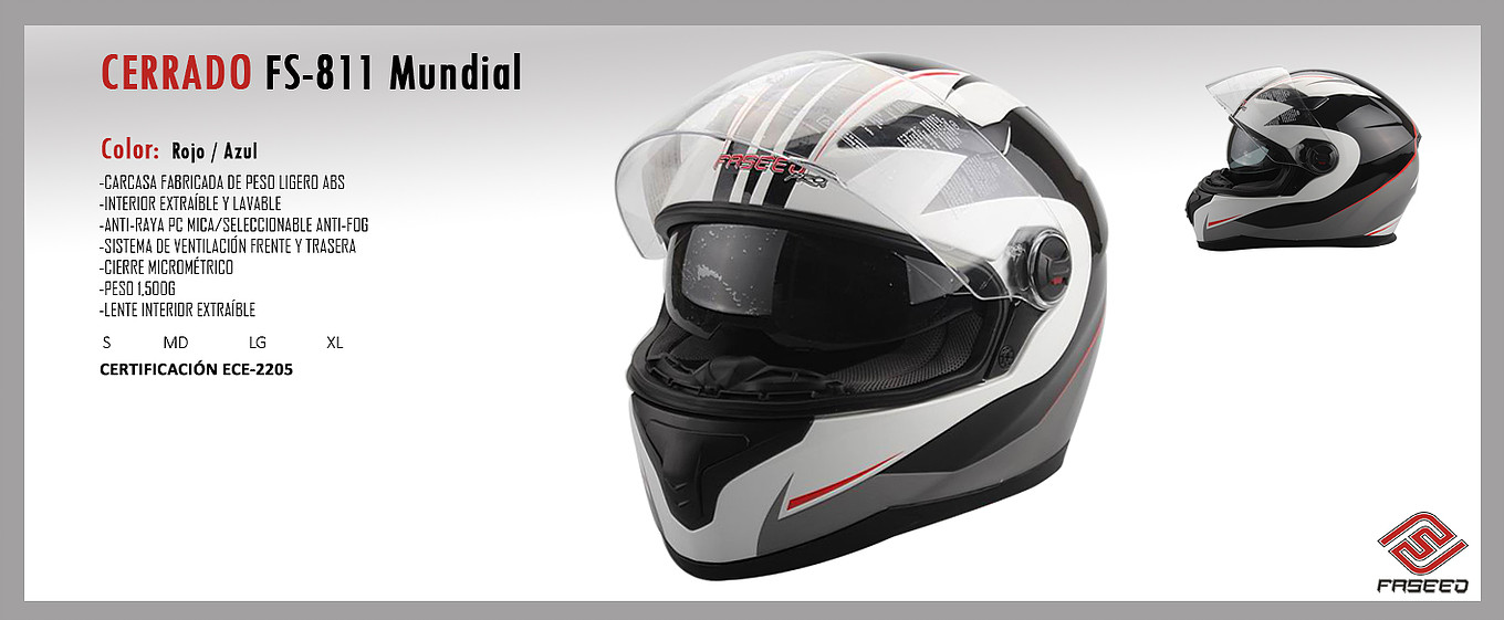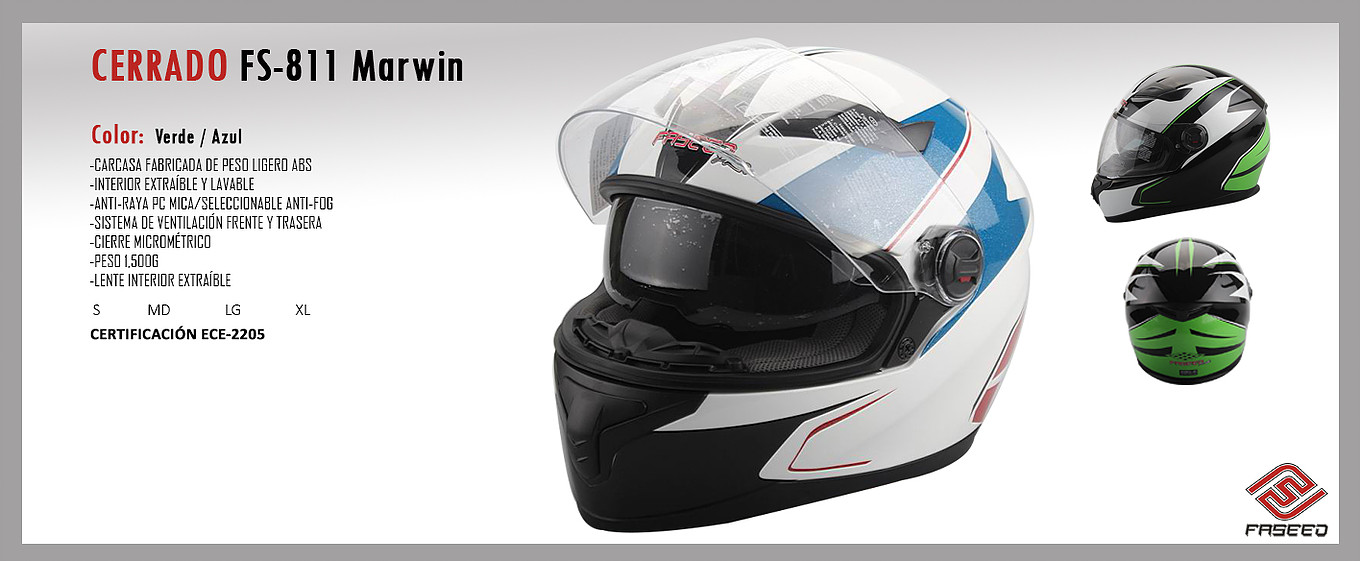 CASCO FASEED CERRADO CON LENTE INTERIOR, CERTIFICADO ECE-2205 MODELOS: MARFIN, AQUARIO, MARWIN, MUNDIAL, TSRCOM TALLAS: M, L, XL, XXL