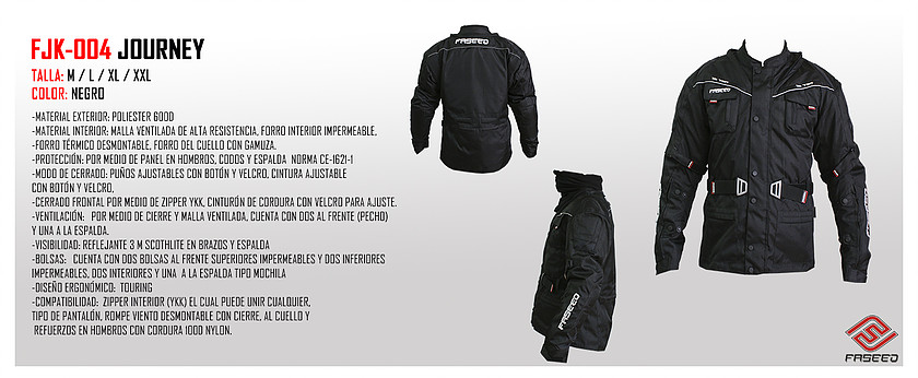 CHAMARRA TEXTIL LARGA FASEED FJK-004 JOURNEY COLOR: NEGRO TALLAS: M,L,XL,XXL
