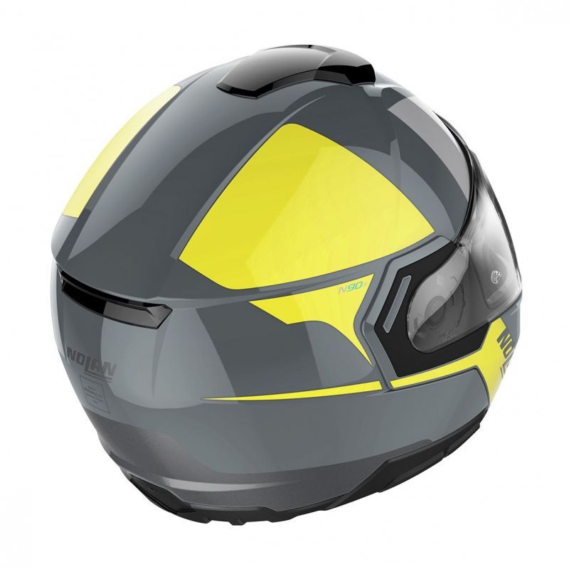 Este es el nuevo casco volteo de Nolan. Se caracteriza por un diseño sólido y compacto y sus generosas especificaciones técnicas. La homologación doble P/J, la visera ultraancha, la visera VPS (ajustable en varias posiciones), el sistema de ventilación superior AirBooster Technology, el exclusivo mecanismo de apertura de la barbilla de doble acción, el sistema de retención Microlock2 de doble palanca con ajuste micrométrico y la configuración para el sistema de comunicación N-Com hacen del N90-3 un interesante casco flip up para los sectores scooter y moto.