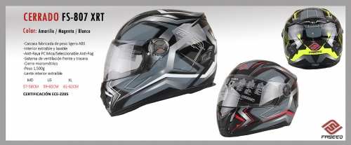 CASCO FASEED CERRADO CERTIFICACO ECE 22-05 MODELO: HORNET, DJ STAR, XRT TALLAS: M, L, XL, XXL