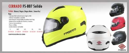CASCO FASEED CERRADO CON LENTE CERTIFICADO ECE 22-05 COLORES: BLANCO, NEGRO, ROJO, NEGRO MATE TALLAS: M, L, XL, XXL