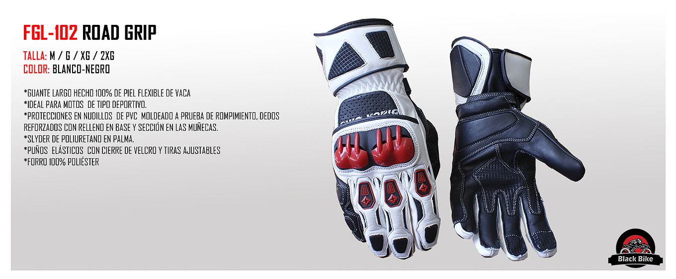 GUANTES LARGOS DE PIEL BLACK BIKE FGL-102 ROAD GRIP COLOR: BLANCO/NEGRO TALLAS: M,L,XL,XXL