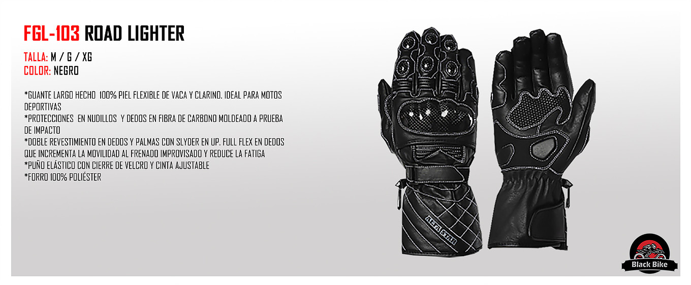 GUANTES LARGOS DE PIEL BLACK BIKE FGL-103 ROAD LIGHTER COLOR: NEGRO TALLAS: M,L,XL