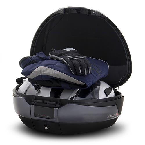 El top case SH48 se trata de un producto de gama alta, con todas las exigencias del mercado y las máximas prestaciones. Con capacidad para dos cascos modulares y un peso de 3,7 Kg de baúl, es la maleta más ligera del mercado en baúles de alta capacidad. Con ello reducimos las vibraciones haciendo sufrir menos a los soportes y chasis de la moto. Su marco estructural garantiza una alta rigidez y resistencia con un peso mínimo.