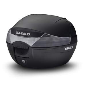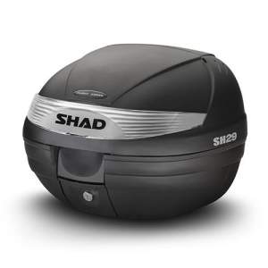 La sh29 es una maleta de moto compacta y práctica, compuesta de polipropileno reforzado de alta calidad y con capacidad para guantes y un casco modular. De formas curvas y